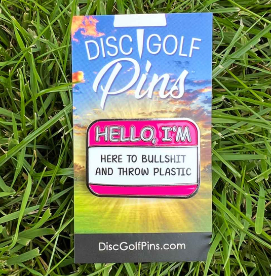 Hello, it's nice to meet you. I have to confess, I'm ready to throw! Put yourself out there with this funny play on the common name tag but with a disc golf twist. Each pin is a high quality dar...
