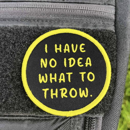 You're standing at your disc, contemplating life and why you even play this game, thinking to yourself "I have no idea what to throw...". This round velcro patch has a lime green outer edge with li...